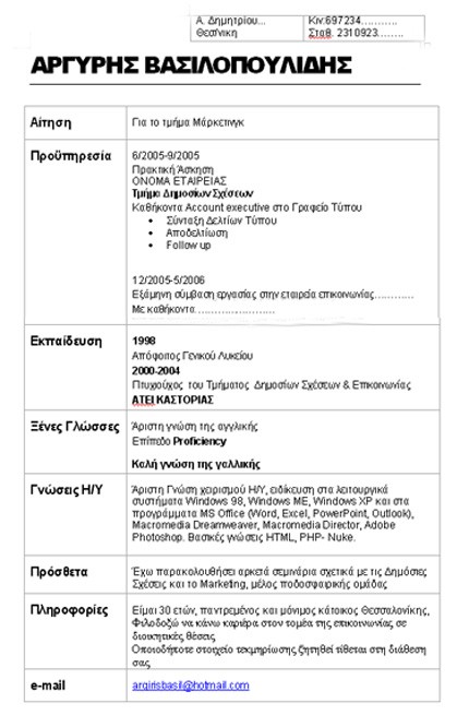Παρακάτω σας παρουσιάζω τη δική μου πρόταση για ένα καλό, τουλάχιστον οπτικά, βιογραφικό το οποίο προβάλλεται στην επόμενη σελίδα.